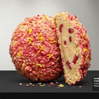 A Lemon-zested panko crust around a strawberry-studded core โ three textures in conversation, designed to make you reach for another.This creation challenges what a cookie can be. We take the familiar strawberry shortcake ice cream bar and deconstruct it into layered architecture: citrus-armored panko, white chocolate tenderness, and freeze-dried strawberry intensity.This is nostalgia pushed forwardโchildhood memory refined through technique, texture sequencing, and acid-balance engineering.Art you can eat.